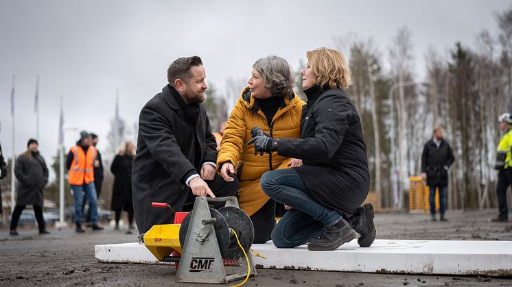 Från vänster: Johannes Hulter – ordförande i Göteborgs Stads stadsbyggnadsnämnd, Ulrika Nyström - affärsområdeschef på Riksbyggen, Johanna Frelin - vd på Riksbyggen