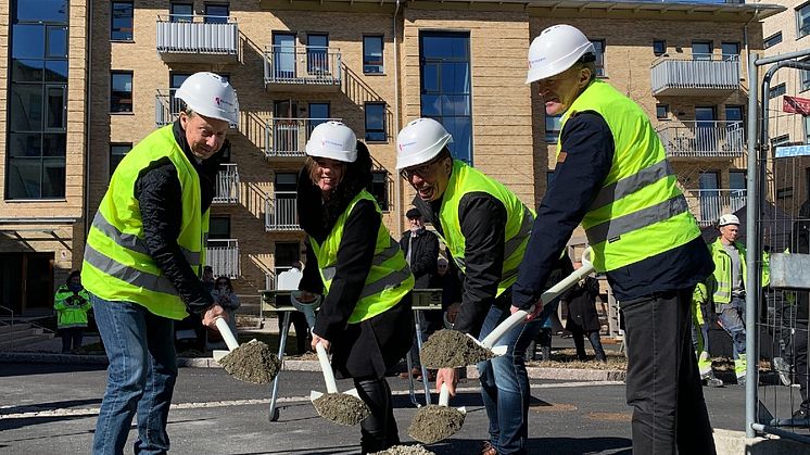 Första spadtaget för Riksbyggens Brf Guldäpplet på Södergården i Uddevalla